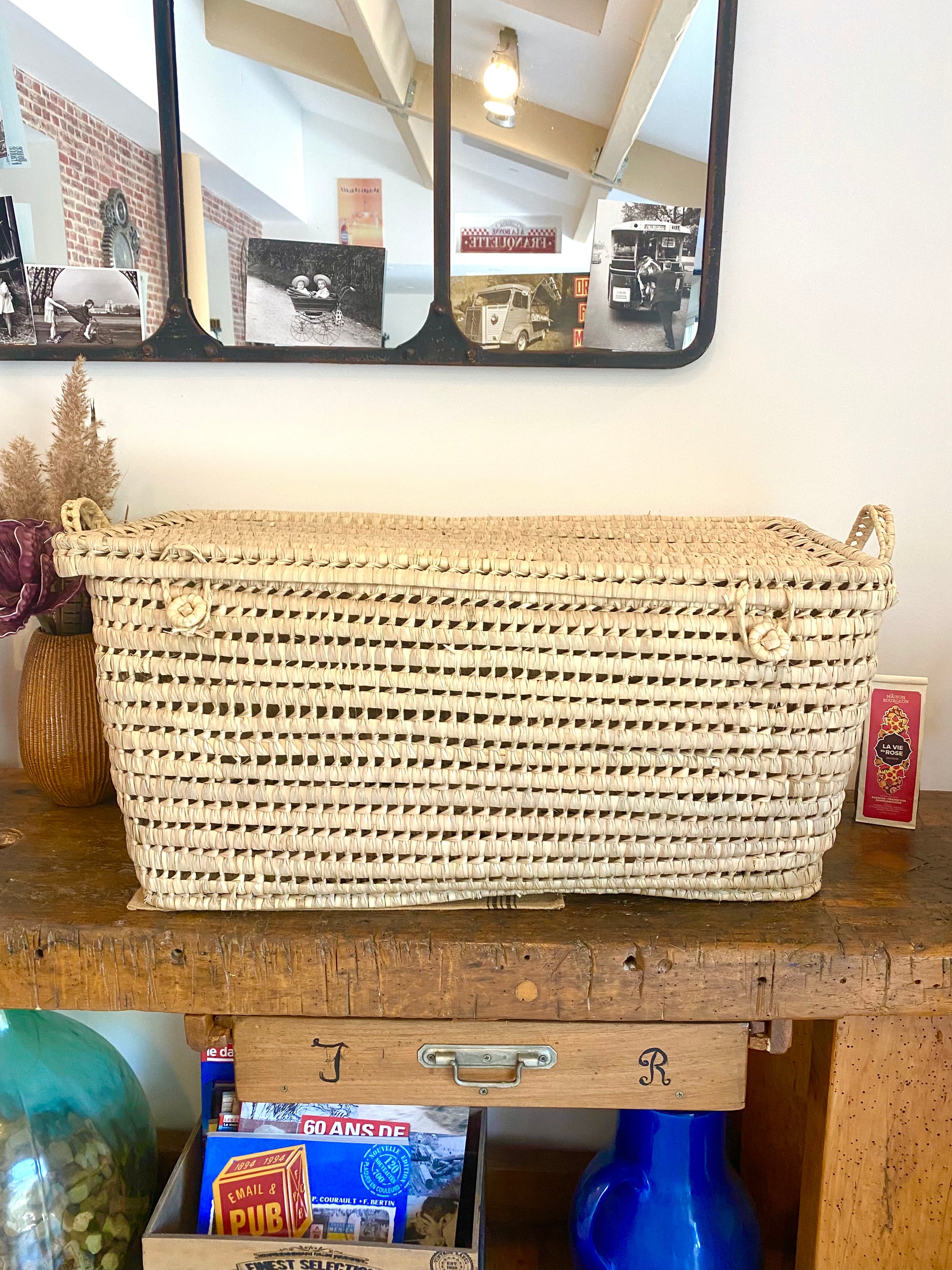Apportez une touche d’authenticité à votre intérieur avec ce coffre en paille tressé à la main. À la fois pratique et décoratif, il offre un espace de rangement idéal pour vos couvertures, jouets ou accessoires tout en ajoutant une note chaleureuse et naturelle à votre pièce. Son design artisanal, avec des finitions soignées, en fait une pièce unique qui s'intègre parfaitement dans un intérieur bohème, rustique ou contemporain. Légère mais robuste, cette malle en paille est une solution de rangement élégante qui combine fonctionnalité et esthétique.